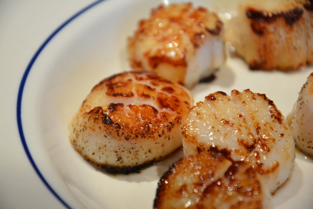 Pat the shellfish dry thoroughly with paper towels and then salt and pepper them on both sides.