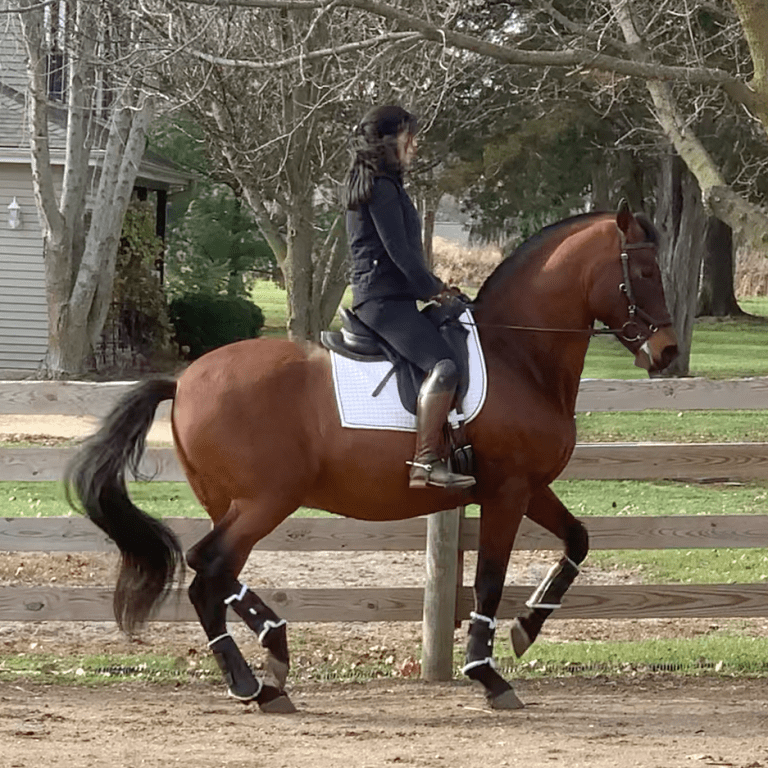 My most pressing current issue is maintaining a consistent connection. This is very important because without a good connection, there is a serious disruption in the line of communication. There are too many moments where I allow a bubble in the reins. I am working hard on this now and watching lots of videos about it on dressagetrainingonline.com (which I recommend, by the way). I am happy to say I have made a bit of progress, even though there is still a lot of room for improvement.